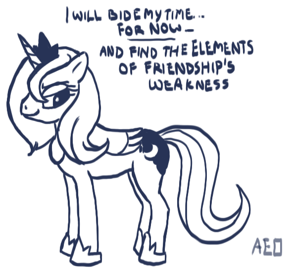 I was just considering that! That she's just biding her time, getting to know the ponies so that she can break up their friendship, so that no one could ruin her plans...