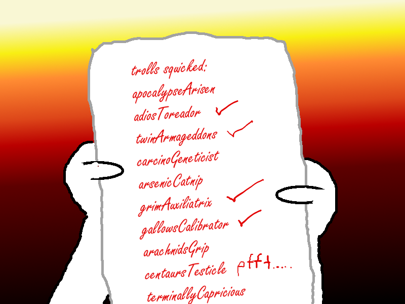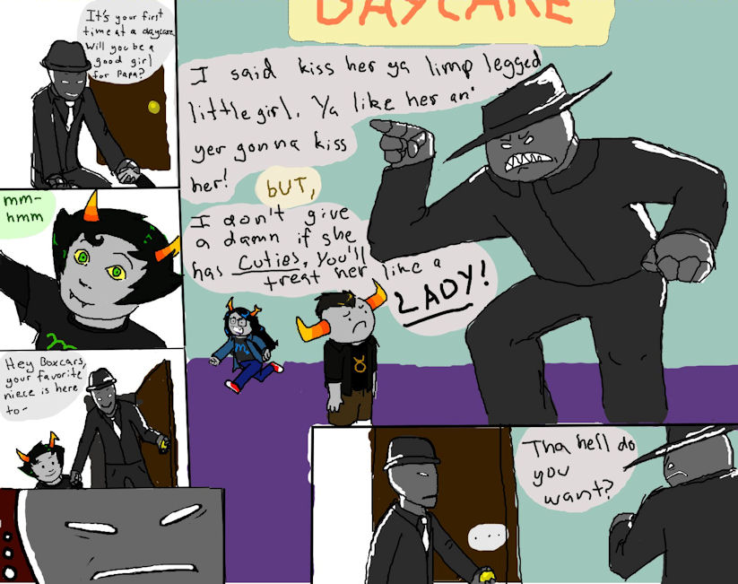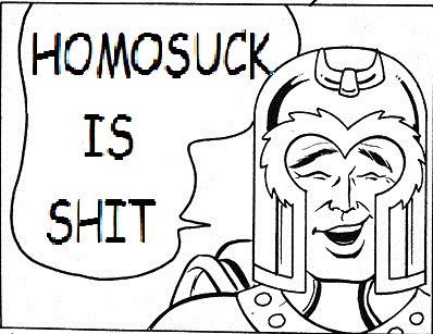10/24/10(Sun)23:03 No. 20763490 File1287975838.gif -(3 KB, 500x346, Aaaaaah.gif ) -- zeugmatographicKrukolibidinous [ZK] began pestering andrewHussie [AH] at 6:4 -- ZK: COLOR >63,72,145 AH: Greetings worthless sack of bile. How are you today? ZK: Fine, broseph. ZK: And you, my embrybro? AH: I suppose you are constantly refreshing that imfamous page while incessantly chatting with your retarded comrades, correct? AH: This brief silence indicates that I was right on the money. ZK: Wrong on both, brah. ZK: Not refreshing MSPA or talking to any bros... any bros but you. AH: In that case, I suppose you wish to suck my dick. AH: Come on, you know you want to. ZK: Nah man, I'm not a fag. AH: That is what you tell yourself, yet the penis. ZK: I don't think that makes grammer, brosideon. AH: So sleek and enticing, a pinnacle of both aerdodynamic engineering and evolution, so to speak. ZK: Hussie, man, I'm not gay. AH: It's diameter perfectly suited to be grasped in the hand as it throbs, it's hard bulk seemingly soft to your senses. AH: Oh yes, you are. AH: You are now. ZK: Now you're sounding like Ivan when he's drunk. ZK: Only you talk about dick cheese less. :\ ZK: (bro) AH: Oh, thanks for reminding me...the smegma. ZK: Also phimosis ZK: Why is everyone either green or blue, by the way? Honestly. AH: It's stench wafts from the head, still partially covered in foreskin AH: Oh, perhaps because of that load of bullshit I call the hemospectrum. But back to the topic at hand. AH: The trails of odor contact your olfactory tissues, a jolt of pleasure travels down your spine. --Cont--->