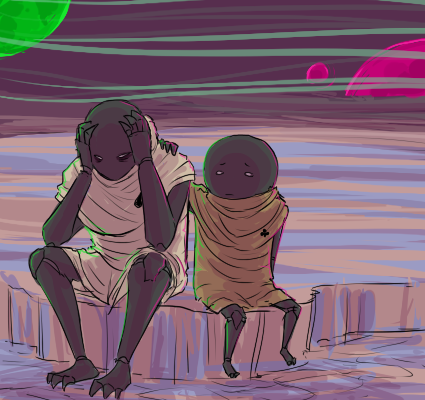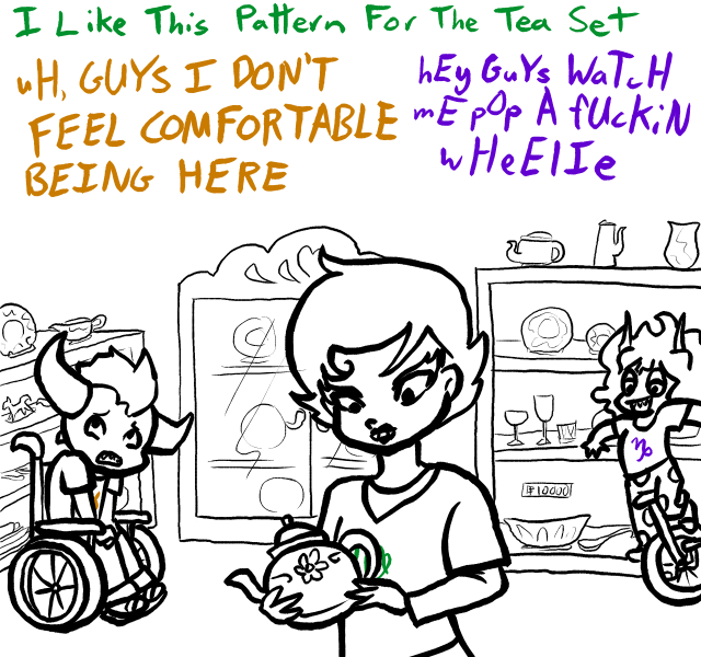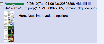 10/27/10(Wed)07:42 No.20815372>>20815293 >John That was his dreamself. Vriska woke him up, then he flew home. This seems pretty obvious, even without reading the pesterlogs... >Rose No one does, last we saw of her. >Dave He's probably the hardest to follow, as we've seen future (casual shirt) Dave, and past (MC suit) Dave. Currently he was making the money to send to Past Terezi, so she traces the money and finds the kids in the first place. Money seems to be for fraymotifs, we don't know exactly what they are, but they're things to do with fighting. >Jade Dream Jade died. Real Jade current has a giant fuck ass meteor about to crash into her home. This is... really fucking obvious. All the kids had meteors, and you can see it at the end of Descend. >this "demon" that's plaguing the trolls came from out of fucking nowhere to me (and may be explained later but if it already was I totally missed this somehow) It's Lord English. We don't know who he is (hints point to Jack) he's a universe eating demon. He came from the rift at the end of Hivebent; the one that denied the trolls their reward (our universe) >Then Derse & Prospit get destroyed by said "demon" that came from nowhere, this essentially kills everyone's dreamselves I think. Yup. >What's everyone even trying to do at this point? John is saving Jade, Dave was fucking around with Terezi, Rose is trying to break the game, Jade is being a narcoleptic derp. Trolls are trying to troll the kids and/or find a way to live.