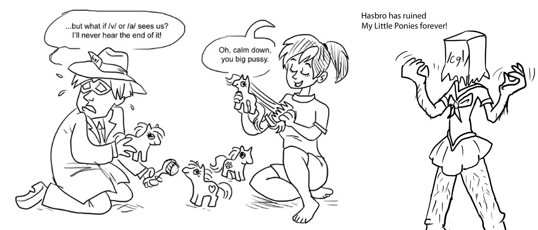 11/02/10(Tue)01:15 No. 20943564 Batpink continued from other thread: >>20941923 Before very long, Batpink had bounced her way over to the Apple family farm, darting between the shadows of the orchard, approaching from the far side so as not to be detected. Most of the Apple family should be asleep, but she wasn't about to go underestimating Granny Smith and get hit with a walker for her troubles. Struggling not to give her stealthy, slow steps the dramatic sound effects they deserved, she padded over to one of the windows on the far side of the barn, peeking in as quickly as she could before disappearing from sight once more. Dimly, she could hear them giggling over something Rainbow Dash had said, something she couldn't quite make out. This was no good! She'd have to get up to the top of the barn, so that she could try and listen in between the old shingles. Applejack had been meaning to replace them for ages, but now her loss was Batpink's gain! With a swift flash of pink hoof, Batpink retrieved her Pinkarang from its hook on her utility belt, throwing it into the darkness above her head. It disappeared for awhile, then hit the shingled barn roof with a dull, rusty-sounding clang. Batpink froze in place, waiting for a surprised reaction that never came, then began to climb. She'd only gotten about halfway up before a flash of movement attracted her gaze, and she flattened herself against the wall of the barn instinctively. She had to avoid detection! Moving only her eyes, she scanned the barnyard below, her brows knitting in confusion when she recognized the bouncing movements below her. What was Angel doing out at this hour?