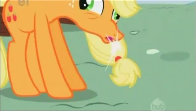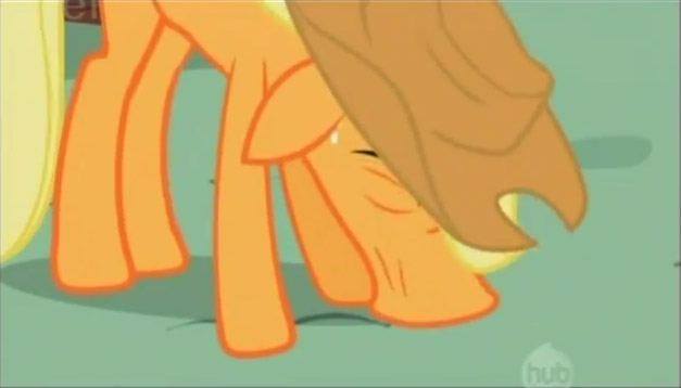 File1289025290.jpg-(16 KB, 469x267, Applejack reluctantly giving B(...).jpg)