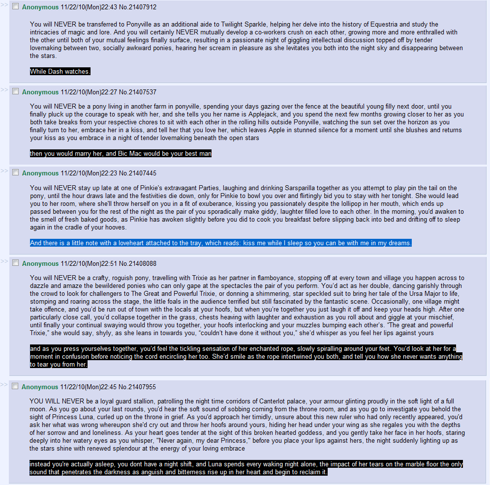 Trixie writefag here to bring you good tidings to all. For I bring you the first chapter Trixie redemption fic like you all have voted for and as I have promised. I will be posting a new chapter every night so be sure to gather round for the fun! Without further delay, here it is! It was a chilly and windy evening Ponyville, but then again, this is fall too. All the ponies in the small, quiet town inhabiting all the ponies not bothered by the roar outside of their homes. All snuggled down with their loved ones by the open flame. Drinking hot cocoa and munching on the hot roasted chestnuts. All content, not a care in the world, especially one. Out in the outskirts of Ponyville, where a small, yet cozy cottage with a sign ordained with wooden carved flowers proclaiming the name of the owner “Fluttershy” where a sunshine yellow pegasus with long pink hair watched through the window from the comfort of her home with worry.