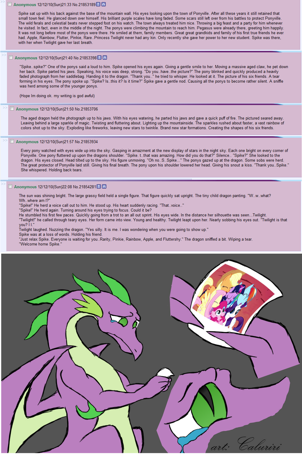 As an apology for bending the rules, have a cap of a sad story about a grown up Spike.