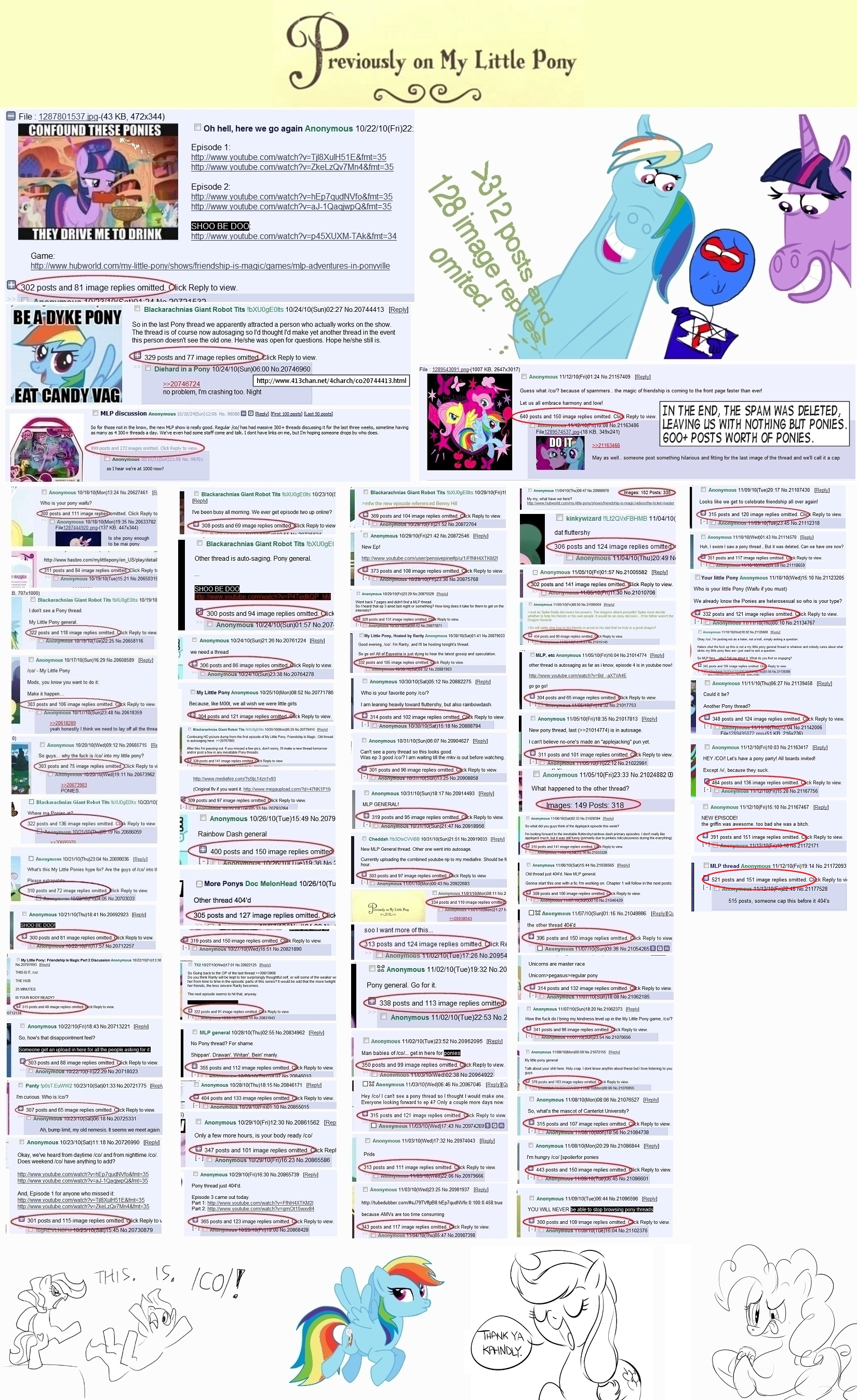 It's harder to explain why I like Friendship is Magic than why I like, say, Homestuck, or Gunnerkrigg Court, or Erfworld. It's probably far from the best thing on TV right now (heck, there's 10-year-old stuff on the Hub that I like just as much), and the show has its flaws, both global and episode-local. But overall, it's still a good-quality show, with the kind of heart-warming aesthetic that you don't see a lot in more "grown-up" animation. That and the verisimilitude of the setting (which is a big draw for me personally - c.f. the other /co/-related shit I like) managed to get me interested. And so far, I'm still interested. |