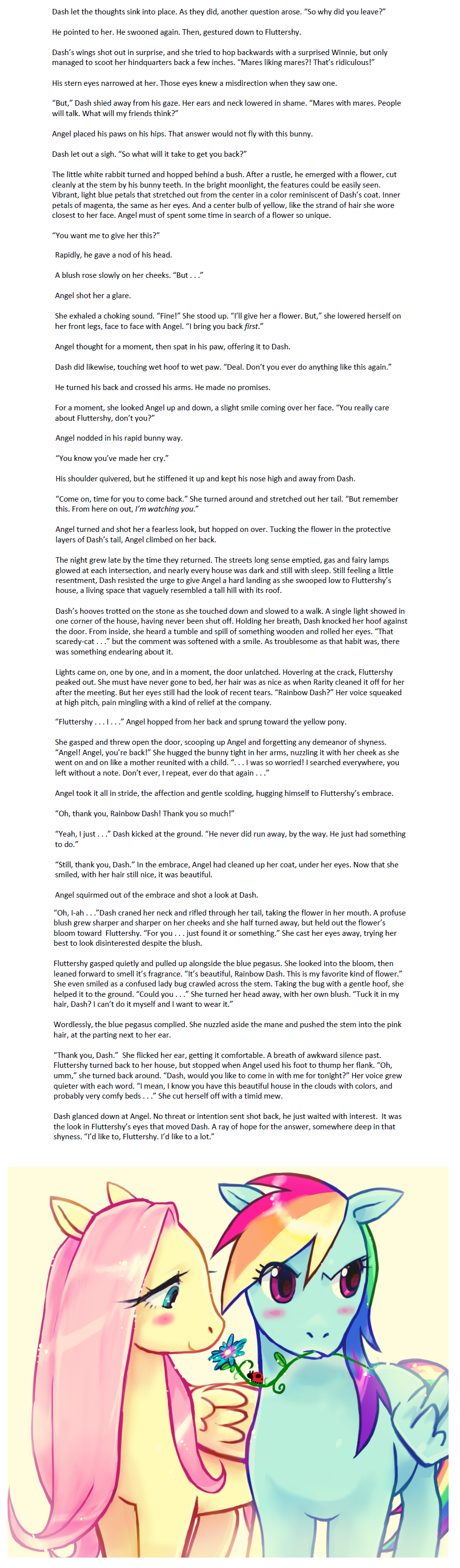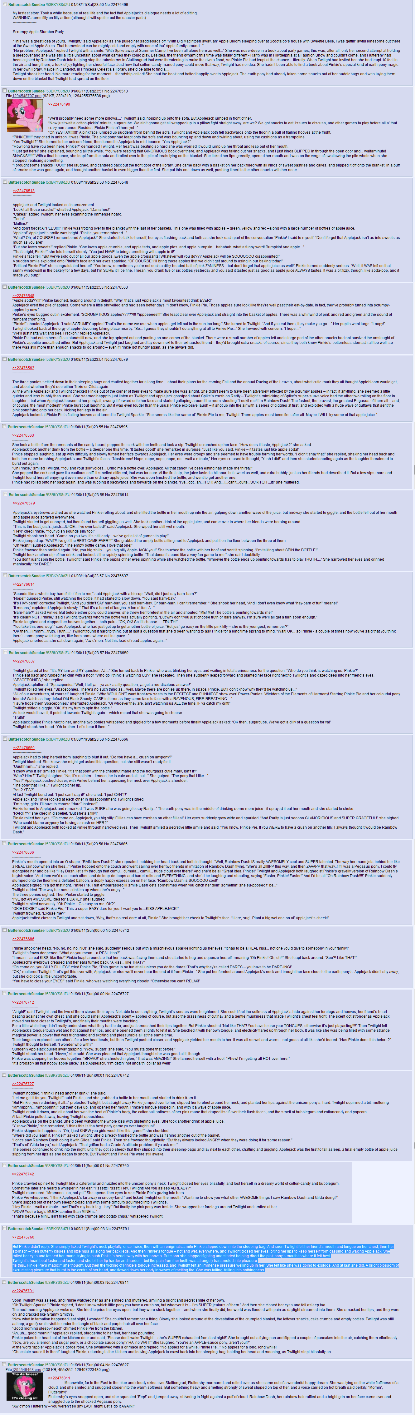 Twilight was finally cleaning the library. Sure, she spent so much of her time there, but she never really cleaned. She left it to Spike. The Spike who had finally wised up to Twilight’s schedule and added it to it. And Twilight loved every moment of it, except for the dust. She had found books that she had usually passed up and magazines from the days before she arrived. Once she managed to dust the place, she went out of her way to re-organize the whole place. Her cheer could only be topped by the book she found. When her eyes finally settled back in their positions, she rushed to show the other ponies. “I think I am a little, TOO, mature for such books, darling.” Rarity replied. “Aren’t you a little old for these books? You could help me with the farm if you have time” Retorted Applejack. “Sorry Twilight, but we’re super extra busy today!” Pinkie yelled across the store, before Twilight could even tell her why she had come. FLuttershy would be off in the woods, and Dash was actually working today. With a sigh, she headed home. To her surprise, Spike was returning home at the same time. “Where did you spend the day, Spike? I didn’t see you at all.” “Those three girls roped me into having a tea party with them. Applejack really needs to buy some cotton ropes instead. But we had to call it a day, because Apple Bloom was allergic to Tomatoes. Who knew? And what do you have there?” Spike pointed at the book in Twilight’s saddle, and a rather sheepish grin appeared on Twilight’s face. “It’s a book I found, but no one wants to read it with me. Say, how about you Spike, we don’t have anything to do later, and I’ll make your favorite dinner! Please!” “Okay, okay, what is it?” |