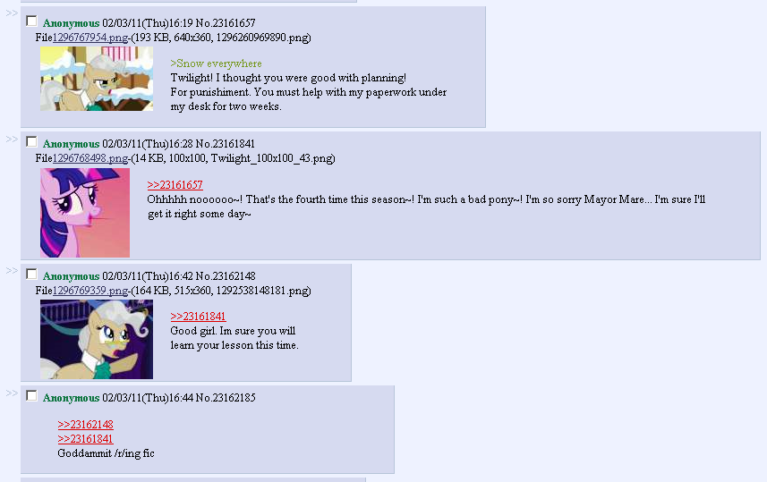 A. The OP has to have keyworlds, namely mlp, pony, ponies, hub, and probably the main cast names. This is how the archiver finds threads, and why you see sometimes unrelated threads in the unconfirmed portion.